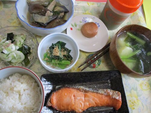 きゅうりが美味しい季節です。なんにでも合う野菜。 今日は炒めてみました。 水菜と舞茸のお味噌汁・キュウリとラディッシュの浅漬け・ミカン・青汁。 ごま油をフライパンにしき、キュウリと叉焼、舞茸を一気に強火で炒め、塩胡椒をひと振りして完了。 簡単…