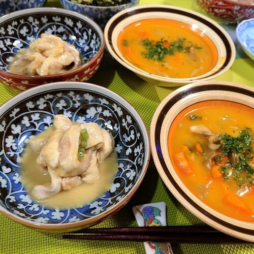 晩ごはん かぼちゃのポタージュ サメのぬたサメは、安くて美味しい食材として、古くから地方で広く愛されています。県南地方では、「正月からえんぶりの時期に食べると美味しい」とされ、上品な白身がお正月に供されます。 …酢味噌和えがぴったり、お酒に合…