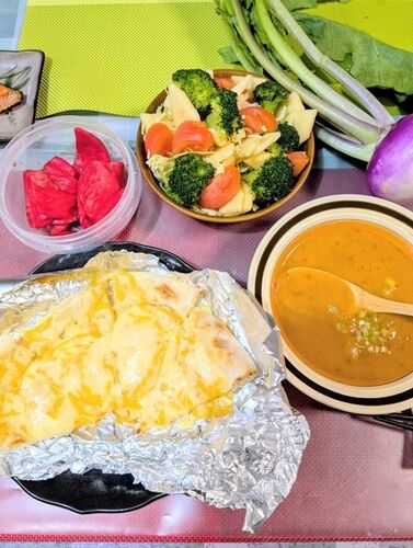 🔶 雪が降ってメリークリスマス♪♪ チーズピザ、赤かぶ漬け、サラダ、蟹ビスク父のケーキせわしない年の暮れですが、一日ごとに新年にむかっていると思えば、楽しい楽しい日々です。うれしいですね。 🔶 もものすけ桃カブが手に入りました。きれいな色合い。葉っ…