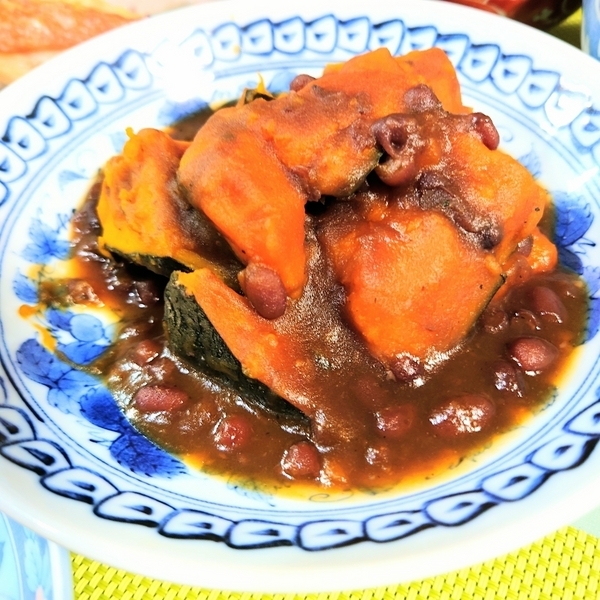 「いとこ煮」とは、主に野菜や豆類でつくる煮物のことで、正月やお盆、その他祝いの席でお供えした野菜や豆を、行事の後に煮て食べたことがはじまりだといわれています。その名の由来は諸説あり、“野菜別にめいめいに煮る”から”姪々”とかけ、姪同士はいとこであるからという説。また、“野菜を追々煮る”から“甥々”で甥同士はいとこであるからという説。そして、野菜や豆は畑でとれるもので、いとこのようなものだからという説があるそうです。野菜の収穫が少なくなる厳寒期を健康に乗り越えられるように願いを込めて、保存していた栄養価の高いかぼちゃを食べる習慣がいまに伝わるとか。また、小豆も保存がきき栄養価が高いことから、「かぼちゃのいとこ煮」は、風邪をひかずに冬を乗りきるための郷土料理として親しまれてきました。さらに小豆の赤は邪気を払うといわれ、縁起の良いかぼちゃと小豆でつくる「かぼちゃのいとこ煮」が食べられるようになったそうです。