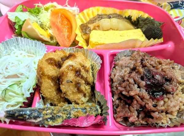 2024-12-04 父へお弁当 🔷 月曜の夜のお弁当いつも子ども学習支援日の夜は、父にお弁当を作ります。たまに雑穀飯もいいかなと思い、用意したら、美味しいと喜んでくれました。玄米発酵ごはんと赤米。 🔷 ゲンペイカズラ(寒い土地には育ちにくい南洋の花) さっき、小学校の親子学習会の資料作りがやっと完成しました。これで最後の授業。来年度からこの子たちは、他の小学校に通うのです💦