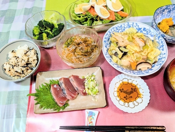 2025-12-22 昨日のごはん 🔷 ほうれん草のチーズ焼き 父の晩ごはん 八宝菜、カツオ刺身、春雨もずく、ひじきご飯、サラダ、ブロッコリー お味噌汁 お歳暮にいただいた、「茨城の焼きいも」毎年、いただきます。そのままでも食べられる。とっても美味しいのでおすそ分け♫ 今日は、朝から定期検診。→父と歯科へメンテナンス→お世話になった方へお届け物。バタバタします。0℃ 曇り。