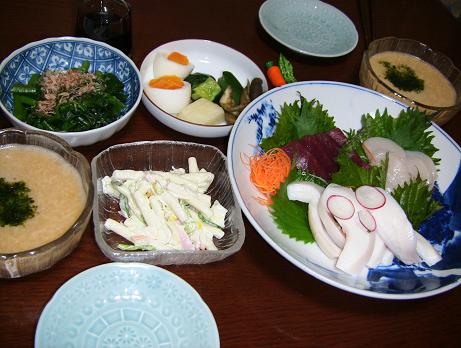 2007-08-24 夕ご飯 料理 #食べ物 お刺身(まぐろ・ほたて・たこのぼっち) つるむらさきのおひたし・長いものとろろ マカロニサラダ・つけもの そろそろ、冷蔵庫の替え時かな。 新しい方は、収納スペースが広くなってるし、 野菜を入れるところが、取り出しやすく工夫がされてて。 位置が下だと、腰痛になりやすいからね。 16年間・・・冷蔵庫と共に暮らした、16年間。 長いような短いような16年間だった。 明日、電気屋さんで冷蔵庫を見てこよう!