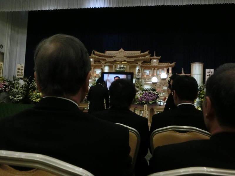 大きな遺影がテレビ画面みたいに前にあって、喪主の挨拶の後で