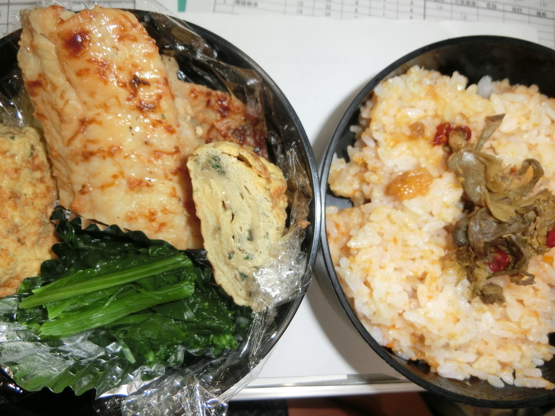2018-06-14 ウニご飯弁当 心のままに #日々の出来事 雲丹が甘塩で劣化する前に、炊き込みご飯にしました。 トッピングは、ふきのとうの佃煮です。 ほうれん草のお浸し、パセリ入り卵焼き、タラ西京焼き。赤色がないわね。 喉がガラガラになり、葛根湯を服用しています。声がかすれて思うように話せない。 試験も近いので、早く治さないと生徒に悪い。 暑いかと思えば急に冷え込み、免疫力が弱いから、気を付けないと。